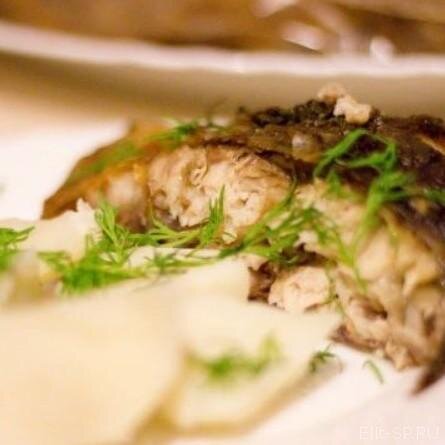 Ингредиенты «Карп без костей» Как приготовить «Карп без костей» 1. Этап Рыбу очистите и выпотрошите, хорошо промойте и вытрите. Сделайте по всей тушке с обеих сторон много не слишком глубоких надрезов, это поможет избавится от мелких костей. Затем тушку посолите и поперчите по вашему вкусу, а в брюшко поместите пучок укропа. 2. Этап Карпа поместите в рукав для запекания, плотно завяжите и готовьте в разогретой духовке до 200 градусов 1 час. 3. Этап Подавайте теплой. Приятного аппетита!!!
