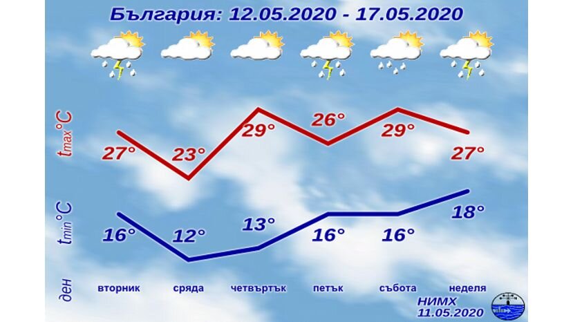 Сегодня будет солнечно. После обеда с запада облачность начнет увеличиваться. Будет дуть слабый, в Восточной Болгарии умеренный юго-западный ветер. Максимальная температура будет между 27° и 32°... На этой неделе температура в Болгарии повысится до 30 градусов
