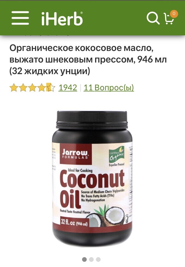 Давайте я напомню, что жарить НЕ полезно!😃 ⠀ Но иногда так хочется🙃, м? Ставьте 👍🏻, расскажу про свой выбор масла😉 ⠀ Все эти масла с высокой точкой горения 🔥, что очень важно, для избежания образования большого количества канцерогенов! ⠀ 1️⃣Рафинированное кокосовое масло 🥥 ⠀ 🤫внимание, не дезодорированное, это производится химическим путём, используя растворители, его сложно, нет, его скорее невозможно переварить организмом🤷🏼♀️) Мне уже несколько раз показывали этот ‘натуральный продукт’ за 200 рублей килограмм.❌ Поэтому обратите внимает, масло должно добываться путём пресса! ⠀ Ну а наш безопасный вариант 🥥, тоже без запаха и жарит как то по особенному.😌 Однажды мы начали жарить чебуреки на остатках кокосового нерафинированного✅, а потом продолжили на растительном дезодорированном❌👉🏻поменялся хруст корочек, соответственно было уже как-то не так вкусно и жирно🙄 Заметила и моя знакомая, что сырники на таком кокосовом гораздо вкуснее😊 ⠀ Беру я его на iHerb, в среднем 11
