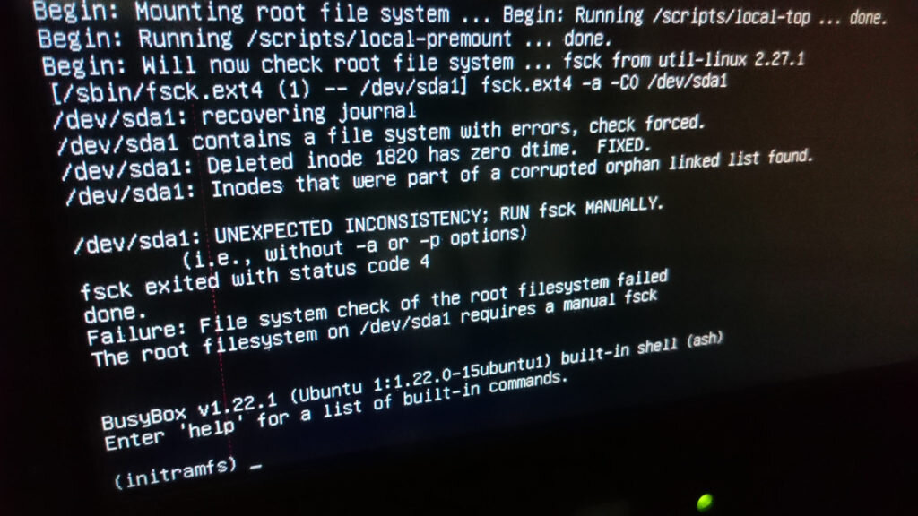 Как исправить ошибку «file system check of the root filesystem failed» на Ubuntu Server 16.04
