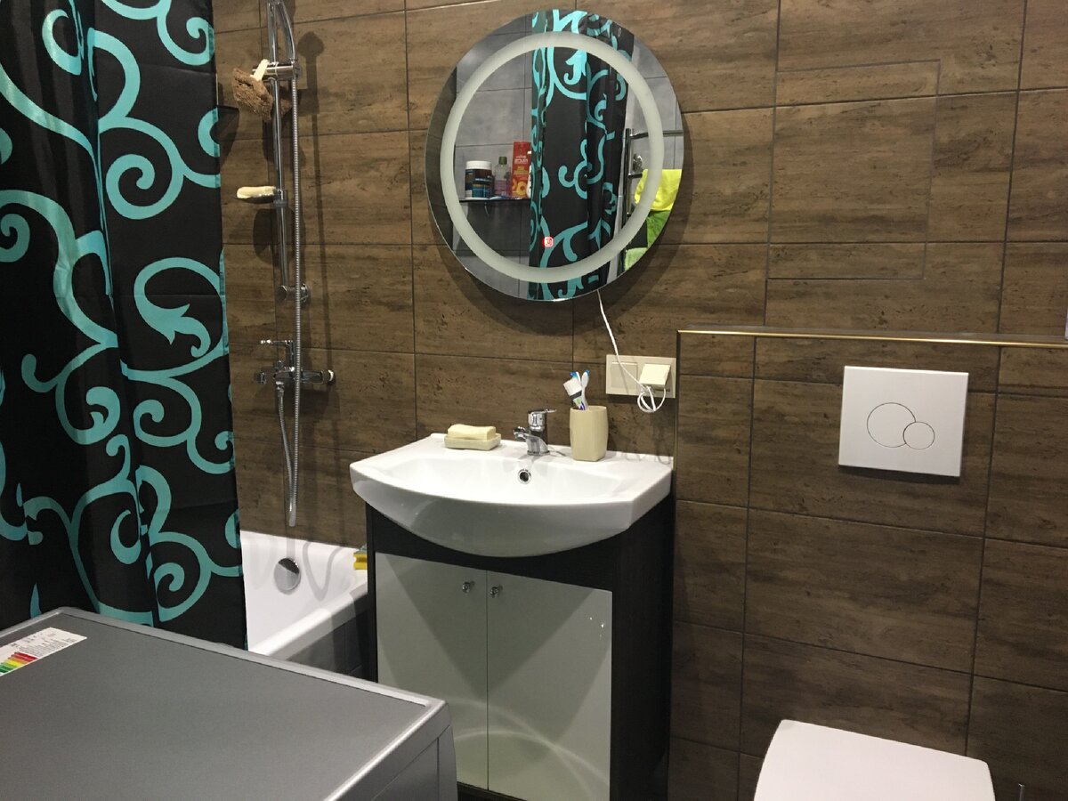 Наверно одним из самых удачных помещений в квартире, по мнению нашей семьи конечно, у нас получилась ванная комната👍🚾. Может, потому что бригада УХ почти не принимала участия в этой работе, а может, потому что мы сразу видели достаточно точно в данный момент картину мира 😂🛠. Изначально это был раздельный санузел, но уж больно маленький😑. Мне лично хотелось и полноценную раковину, и стиральную машину в одном месте. Мы решили, что сможем-таки поделить втроём данную площадь после ее объединения👨👩👦. И знаете за три месяца проживания пока ни разу не подрались🤗! Выводы из ремонта: ванная комната и кухня самые дорогие в ремонте с учетом замены всего и вся💸💸💸. Ещё при планировании санузла муж сразу высказал своё желание иметь подвесной унитаз, очень ему нравилась данная экспозиция в ремонте других людей💁♂️. Мне данный вопрос был не принципиален и я согласилась. Действительно плюсы есть в такой задумке: убираться легче, а под подвесную тумбу можно что-то засунуть 💁♀️. И так