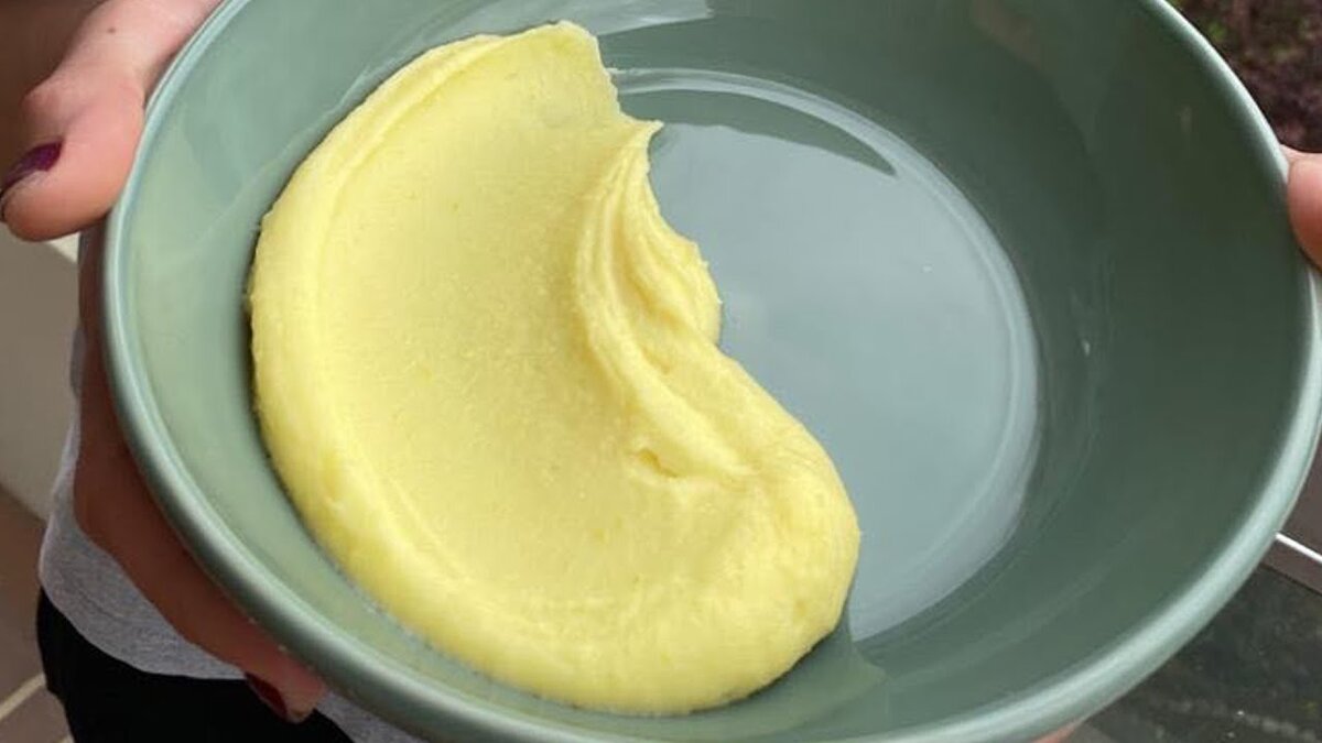 - 100 гр хорошего сливочного масла - 100 мл молока - соль по вкусу Картофель почистить, нарезать равномерно среднего размера кусочками, промыть под холодной водой. Картофель залить холодной водой (воды по объёму должно быть в полтора раза больше чем бульбы) посолить, варить не накрывая крышкой 20-25 минут (проверять кончиком ножа). Масло нарезать кусочками и держать в морозилке. Молоко подгореть. Слить всю воду с картофеля, протереть его через сито или размять толкушкой. Ввести холодное масло с помощью венчика, одновременно взбивая его немножко. Добавить тёп