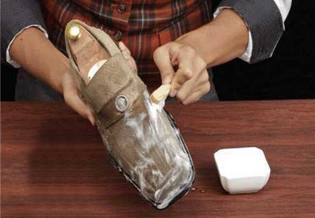 Почистить светлую замшу самостоятельно можно двумя методами: сухим и влажным. К влажному способу стоит прибегать в крайних случаях, когда загрязнение слишком сильное и не уходит после сухой чистки. На заметку! Не используйте для ухода за замшевыми вещами слишком грубые щетки. Пользуясь салфетками, губками или мягкими щеточками, не давите на материал слишком сильно, иначе рискуете его деформировать. Эти методы подойдут для избавления от несложных пятен на светлой замше. Резиновый ластик Обычный канцелярский ластик легко справится с лоснящимися пятнами, грязными брызгами и многими другими загрязнениями на светлой замше. Достаточно просто потереть им испачканные места: грязь начнет скатываться и поверхность изделия снова станет чистой. После чистки замши резиновым ластиком, рекомендуется потереть ее щеточкой, чтобы восстановить ворс. Для ухода за замшей можно также приобрести специальную резиновою щеточку. Крахмал или тальк Способ подходит для удаления с бархатистой поверхности свежих жир