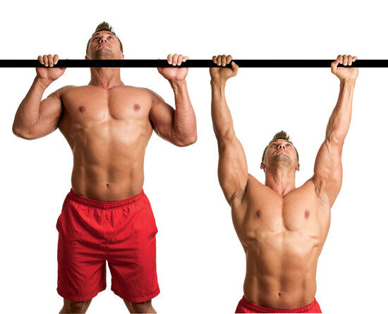 .Подтягивание - это базовое и многофункциональное упражнение, способствующее развитию верхней части тела, в частности: предплечье, бицепс, трицепс, широчайшие спины. .Техника .Правильно подтягиваться следует для получения правильной и полезной нагрузки на мышцы. Не обязательно запрыгивать на турник, можно подняться по чему-либо, потом взяться за перекладину на ширине плеч, плавно подняться, зафиксироваться буквально секунду, так же плавно опуститься, полностью разогнув руку в локтевом суставе. .Существует множество разных видов подтягиваний, но достаточно знать несколько видов, для качественно проработки тела. Следует разграничить все упражнения на три вида: стандартные подтягивания - руки на ширине плеч, многофункциональная проработка всего верха тела; подтягивания на спину - хват немного шире плеч, подтягиваться следует вытягивая себя именно путём соединения лопаток; подтягивания на бицепс - подтягиваться можно как на обычной перекладине обратным хватом, так и на турнике "┬┬" вида