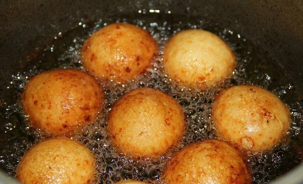 Для приготовления нам понадобится: 500гр творога; 1.5ст. муки; 1ст. сахара; 3 яйца; 1п ванильного сахара; 1п разрыхлителя; масло для жарки Творог растереть с сахаром и добавить яйца. Затем просеять муку, ванилин и разрыхлитель. Добавить в творожную массу. В казан наливаем растительное масло и хорошо разогреваем. Влажными руками берем немного теста и скатываем шарики 3-4 см в диаметре. Бросаем шарики в кипящее масло, жарим пока пончики не всплывут и не приобретут красивый коричневый оттенок. Достаем наши пончики шумовкой. После первой порции пончиков убавляем огонь и жарим остальные пончики на медленном огне. Готовые пончики выкладываем на пергаментную бумагу, даем лишнему жиру стечь. Остывшие пончики посыпаем сахарной пудрой.