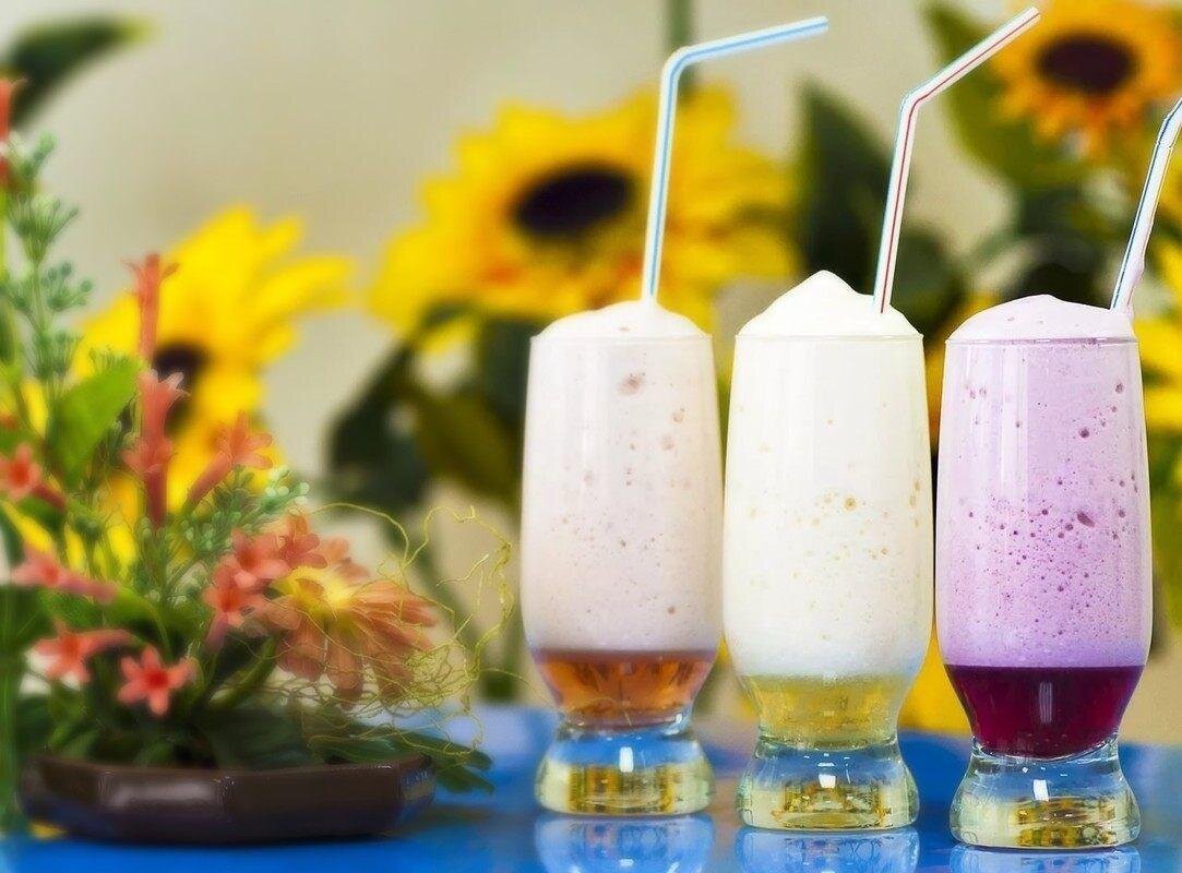 Кроме того, потребуется основа коктейля на выбор – молоко, сок, травяной отвар. Обычная вода и сироп из корня солодки.