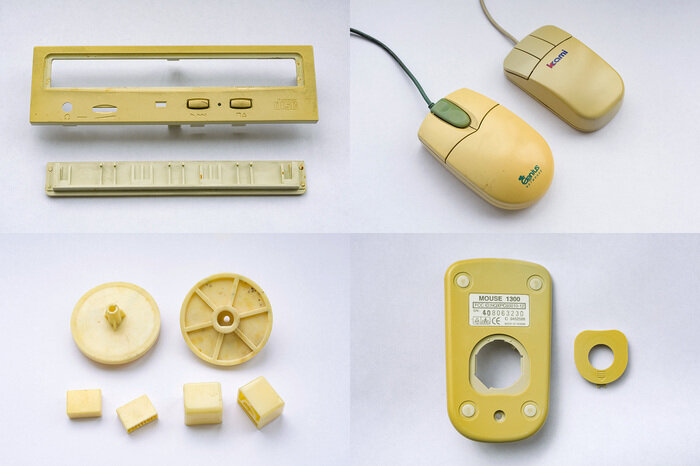 Нет, на фото видно, что она немного светлее, чем остальной дисковод, но так было и до замачивания. Однако я по-прежнему продолжаю верить в лучшее в людях! Возможно, stslam всё написал правильно, просто этот метод работает не для ABS-пластика, а для какого-нибудь другого. Ну-ка, что у меня ещё есть пожелтевшего? Точно, детали от советских магнитофонов!
