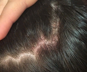 Волосы становятся тонкими, ломкими, срок жизни сокращается, они замещаются пушковыми волосами. Процесс сопровождается чувством стягивания кожи, зудом, неприятными болезненными ощущениями.