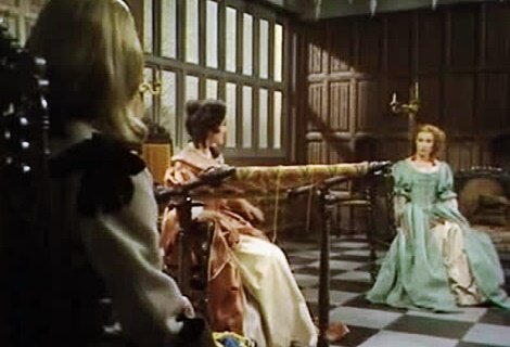 Мария Моденская, вторая супруга герцога Йоркского, будущего короля Джеймса II Стюарта (или как принято в русской историографии - Якова II) между делом за вышивкой решает устроить брак пажа своего мужа Джона Черчилля (будущего первого герцога Мальборо) и Сары Дженнингс, любимой фрейлины своей падчерицы принцессы Анны (будущей королевы). К слову, редкий случай для "политических" браков того времени - молодые питали друг к другу искреннюю симпатию.