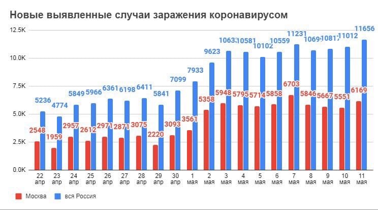 Графики РИА Новости Проектный офис Информационного центра по коронавирусу в России (федеральный оперштаб), сообщает, что за последние сутки в России количество подтвержденных случаев коронавирусной инфекции составило 11 656, в том числе выявлено активно 5417 (46,5%) без клинических проявлений.