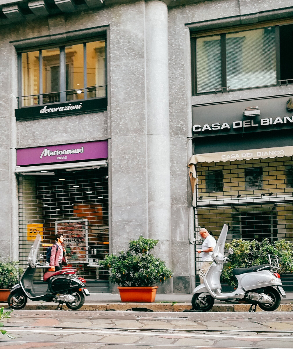 Иногда я разрешаю камере, на телефоне или фотоаппарату, снимать то, что ей хочется. Это происходит так: я держу ее на уровне пояса и просто щёлкаю, пока иду. Потом разбираю, что получилось. Конечно, большинство снимков размазаны и не подходят, но иногда происходит магия. Вот на этом фото камера сняла идеальную гармонию. Девушка в лиловой куртке шла на фоне лиловой вывески и остановилась у мопеда с сидением в таких же оттенках. Мужчина в белой футболке и светлых брюках идёт рядом с вывеской Casa del Bianco, что переводится с итальянского, как «Белый дом», а идёт он мимо светло-серого, почти белого, скутера! Жизнь – лучший режиссёр, но мы часто не замечаем ее постановок.