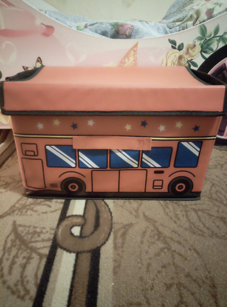 Все мы любим удобные вещи для хранения. Чем понравился именно этот ящик? Рассказываю: 1. Коробка складывается, раскладывется, удобно хранить её как пустую так и с вещами. 2. Яркая, симпатичный принт в виде Лондонского автобуса. 3. Вместительная, а крышка слитная, не нужно думать куда её деть когда открываешь. 4. Есть ручки. Размер коробочки 25 на 37. Цена вопроса 199 рублей. Где купить? Фикс прайс