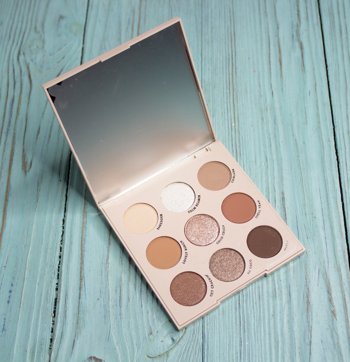 Доброго дня! Продолжаю рассказывать о своей коллекции палеток-девяток от Colourpop и сегодня наконец пришла очередь базовой нейтральной палетки Going Coconuts. Палетка сразу же привела меня в полный восторг — такая малышка поместится в сумочку, чтобы иметь возможность подправить макияж в течение для или преобразовать дневной макияж в вечерний, если нет времени забегать домой, ее можно брать с собой в поездки из-за своей компактности и полного набора необходимых спокойных оттенков на все случаи жизни. В общем, эта палетка и в пир, и в мир, и в добрые люди. Упаковка классическая для девяток — пластиковая коробка, которая надежно закрывается и в то же время не создает проблему для длинных ногтей, внутри зеркальце. Также упакована в картон. Внутри есть зеркальце, заклеенное защитной пленкой и крышку можно закрепить в любом удобном положении. В палетке представлено 5 матовых оттенков, 3 металлика и один матовый с шиммером. Мне нравится эта палетка тем, что здесь есть как холодные оттенк