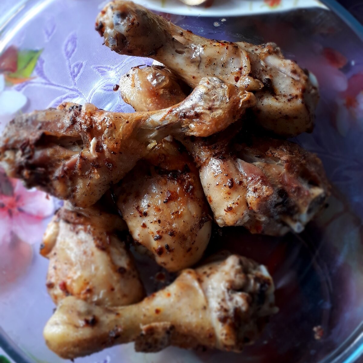 Приятно посидеть с друзьями, а за вкусно накрытым столом - еще лучше. Опробовали функцию гриля в новой духовке. Очень понравилось. 😊 Ингредиенты: Куриные ножки - 1 кг, перец, соль - по вкусу, петрушка измельченная - 1 ст ложка, тимьян - 2 веточки, имбирь измельченный - 1 ч ложка, чеснок - 1 зубчик, масло растительное - 3-4 ст ложки. Приготовление: Ножки обвалять в специях, сбрызнуть маслом и оставить под крышкой на полчаса. Затем уложить на решетку в духовку, вниз поставить поддон с водой, включить функцию гриля и запекать 40 - 45 минут. В качестве гарнира подать также приготовленные на гриле овощи - перец, помидоры, кабачки. Если нет гриля, можно приготовить в форме для запекания. В этом случае можно запечь и картофель, только нарезать его не очень крупно, чтобы успел запечься и специй взять побольше. Приятного вам аппетита!