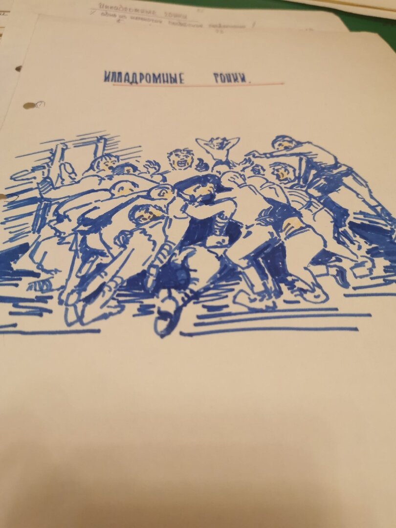 Судьи составляли первое окружение скакового поля. Его роль выполняла офицерская планшетка, по гладкой коже расчерченная необходимыми линиями. За судейскими спинами возвышались потные, взволнованные болельщики-участники. С началом гонок они тесно сдвигались, передние прогибались, грузно оседая под напором задних. Также, кому не удалось втискиваться в круг, а нетерпение и азарт был не меньше чем у других, лезли на чужие плечи, ложились на головы, на них вторым слоем взбирались еще. Это копна шаталась, двигалась махала руками. Кто-то сверху проваливался вниз, а другой, не выдержав нагрузки, в расхристанной одежде выдирался из круга, чтобы тут же заскочить наверх. Никто не ругался за синяки, зато как и болельщики во всем мире, неистово костерили судей.