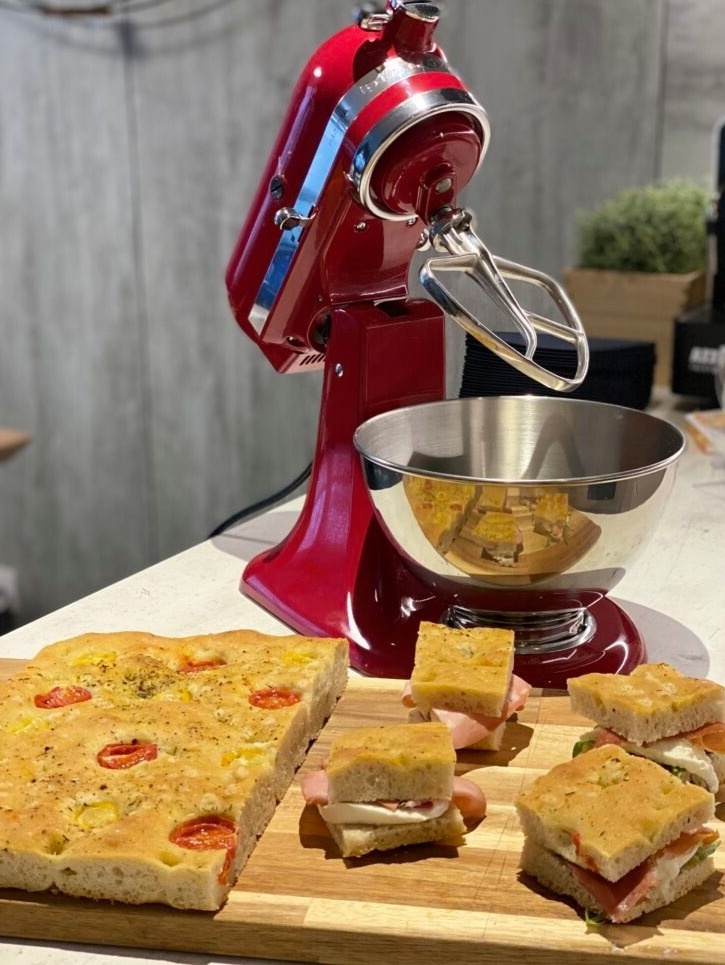Итальянская Фокачча (Focaccia) – один из самых популярных древних видов хлеба, дошедших до наших дней. Эта хрустящая лепёшка появилась на свет благодаря изобретательности сельских жителей, восполнявших нехватку продуктов неуёмной фантазией. Из одного классического рецепта в современной кухне родилось множество вариантов выпечки с разнообразными приправами. Считается, что фокачча стала первым национальным блюдом Италии. Рецепт для нас приготовил Андреа Эна из ресторана " Sapori Italiani“ https://www.utaliana.sk/ Ингредиенты: Приготовление: В миске смешайте воду, масло, мед и мелкую соль и перемешайте все около 1-ой минуты. Затем постепенно начинаем добавлять муку и под конец закваску. Затем месите тесто еще около 15 минут, пока оно не начнет образовывать более вязкую массу, которая начнет отделяться от стенок чаши. Замешанное тесто посыпать зеленью и немного крупной соли, сбрызнуть оливковым маслом и завернуть в фольгу. Дайте