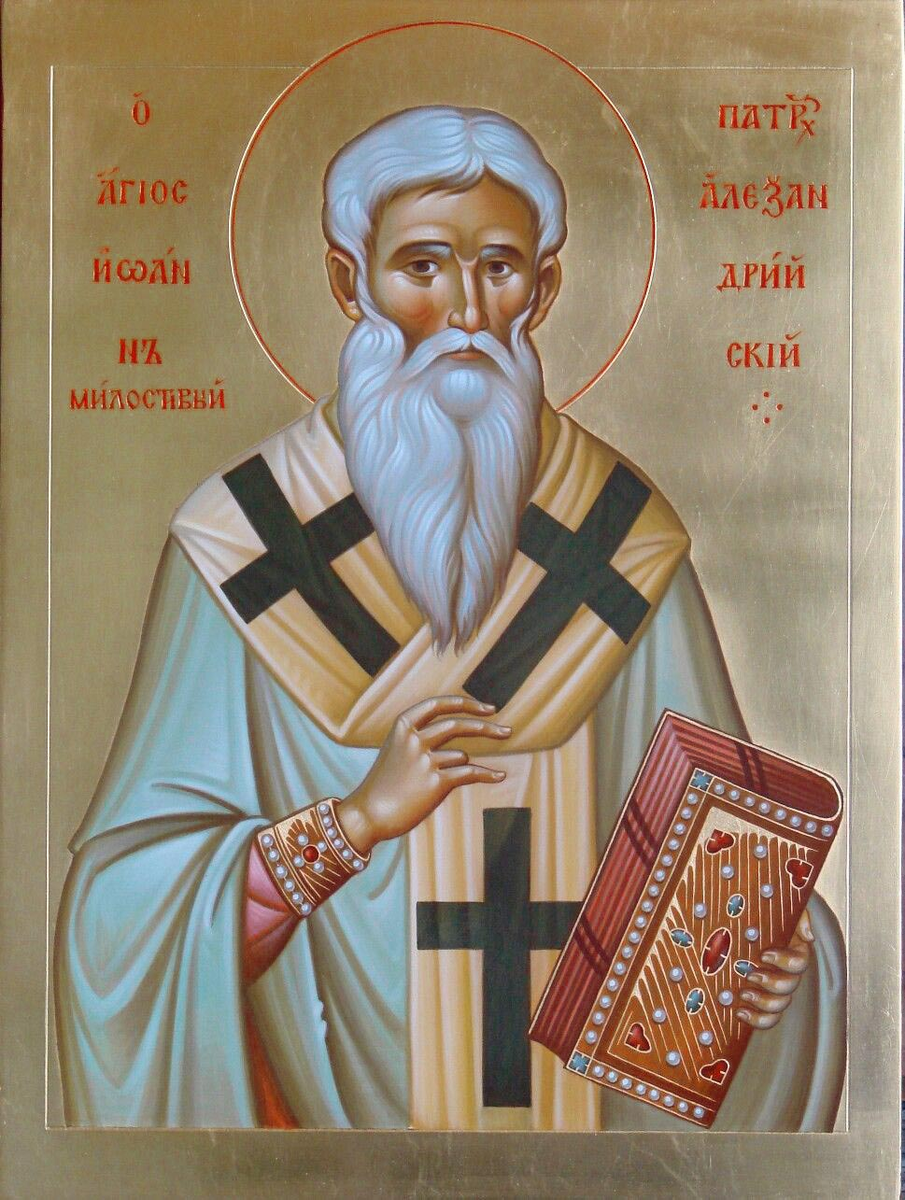 Святителю Божий Иоанне, милостивый защитниче сирых и сущих в напастех! К тебе прибегаем и тебе молимся, яко скорому покровителю всех ищущих от Бога утешения в бедах и скорбех. Hе престай, моляся ко Господу о всех с верою притекающих к тебе! Ты, преисполнен сый Христовы любви и благости, явился еси яко чудный чертог добродетели милосердия и стяжал еси себе имя "милостивый". Ты был еси яко река, непрестанно текущая щедрыми милостьми и всех жаждущих обильно напаяющая. Веруем, яко по переселении от земли на небо, усугубися в тебе дар благодати сея и яко соделался еси неисчерпаемый сосуд всякия благостыни. Сотвори убо твоим ходатайством и заступлением пред Богом “всякия утехи”, да вси, прибегающий к тебе, обретают мир и безмятежие: даруй им утешение в печалех временных и пособие в нуждах житейских, всели в них надежду вечнаго упокоения во Царствии Небеснем. В житии твоем на земли ты был еси пристанище всем сущим во всякой беде и нужде, обидимым и недугующим, и ни един от притекавших к тебе