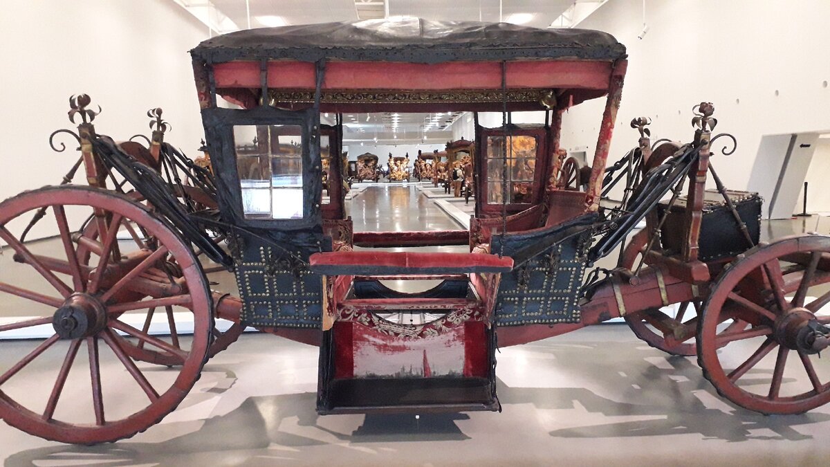 Один из самых любимых музеев, который идеально подходит для посещения с детьми и пожилыми людьми. Экспозиция находится в большом выставочном зале, где много места, света и свежего воздуха. Несмотря на то, что музей расположен на втором этаже, есть большие лифты, что очень удобно для родителей с колясками и людей с ограниченными возможностями. Всего два зала, но они вмещают богатую коллекцию и осмотреть ее можно со всех сторон. Музей работает со вторника по воскресенье, с 10 до 18.00, последний вход в 17.30. Стоимость билета 8 евро. Есть еще старинное здание, где первоначально располагался музей, там сейчас осталось 7 карет, его можно посетить ради роскошной внутренней отделки, стоимость 4 евро. Если покупать билет в два музея - 10 евро. Первый зал посвящен каретам, в разные годы принадлежавшим королевской семье. Самая старая датируется 16 веком. Здесь и мужские, и женские кареты. Кареты королей и королев, их детей (все как и сегодня, не могут же богачи иметь один автомобиль на всю семь