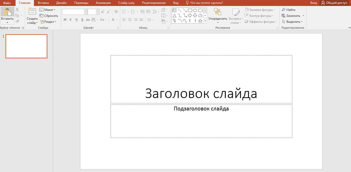 В программе PowerPoint содержится огромное количество макетов слайдов, которые обеспечивают универсальность и креативность, необходимые для создания слайд-шоу. В этой статье вы можете ознакомится с несколькими советами, которые помогут использовать макеты слайдов во время работы для идеальной структуризации информации. Откройте PowerPoint Когда вы первый раз запускаете программу, то первое что видите — это стандартный шаблон титульного листа. Если до этого вы никогда не сталкивались с PowerPoint, то именно в этой области вам придется создавать свои проекты. Каждый лист в презентации, кстати, называется слайдом. На боковой панели слева вы можете увидеть вкладку со всеми существующими слайдами. Это очень удобная область для навигации и быстрого перемещения по презентации. Добавление нового слайда При открытии PowerPoint шаблон для титульника открывается автоматически. Он содержит область для заголовка и подзаголовка. Чтобы добавить новый слайд в презентацию необходимо на панели меню све