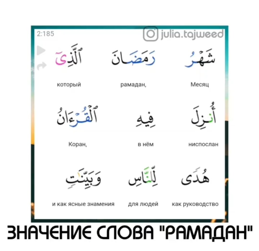 Арабское слово «Рамада́н» رَمَضَان - производное от корня «рамида» رَمِضَ - «быть горячим, раскалённым 🔥» или «рамдааун» رَمْضَاءُ, что значит «палящий зной☀️». ⠀ Существует несколько версий выбора именно такого имени (из различных источников): ⠀ 1️⃣ Название может быть связано с погодными условиями в арабских странах. Но ведь лунный месяц сдвигается каждый год, и Рамадан может приходится и на холодные месяцы. ⠀ Первые строки Корана снизошли Пророку Мухаммаду ﷺ в месяц Рамадан в 610 году н.э. Я нашла информацию, что в тот год месяц Рамадан приходится на август по Григорианскому календарю – а это один из самых знойных месяцев года в Саудовской Аравии. ⠀ 2️⃣ Также во время жажды в желудке появляется ощущение жжения или жары/теплоты. Я такого никогда не испытывала. А вы? ⠀ 3️⃣ Хорошие и добрые дела «сжигают/ выжигают» (как бы стирают) грехи и зло. И вообще, обжиг/ жар/ нагрев меняет многие формы (напр, стекло, железо и др. металлы, даже выпечка и др. еда). Таким образом Рамадан своего ро