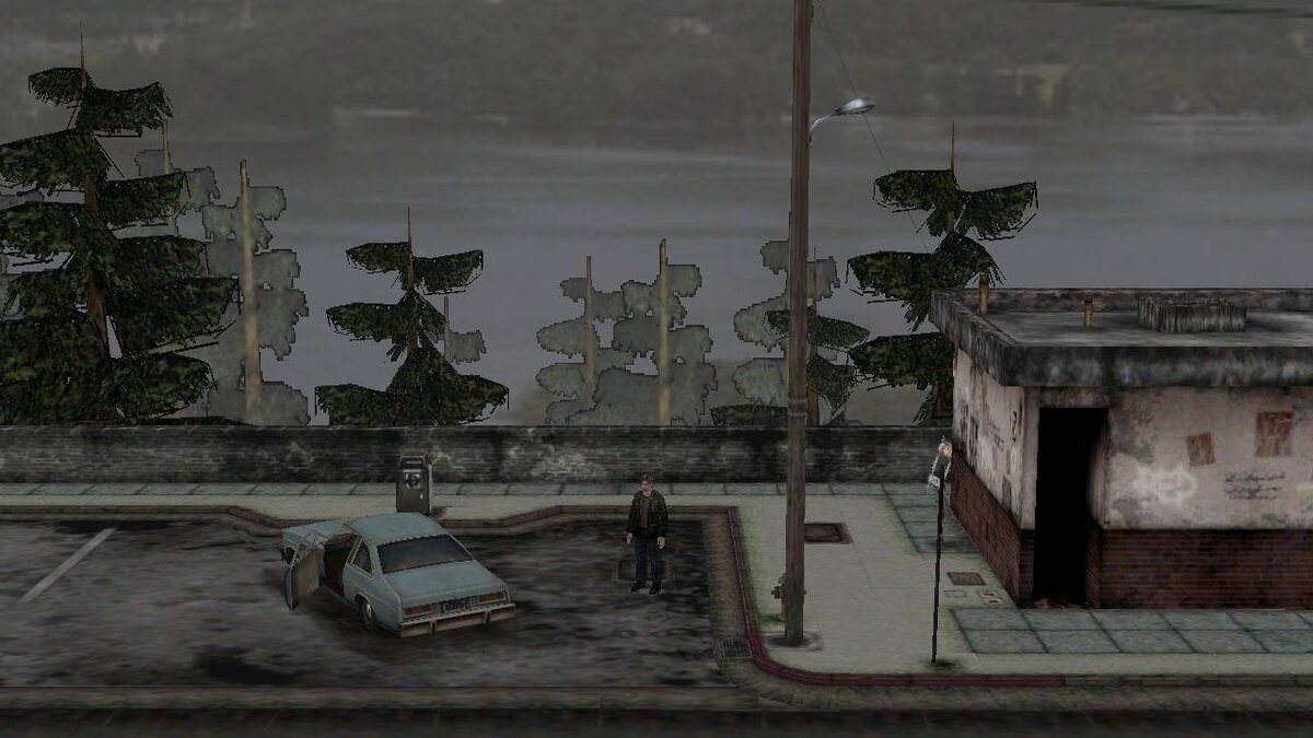 После того как Джеймс покидает стартовую локацию, он держит путь в Сайлент Хилл. И уже тут разработчики проделали очень интересный, но рискованный трюк. Дорога до города не близкая, и вам придётся преодолеть её пешком. По пути вы не встретите никого. Вас встретят лишь безлюдные пейзажи окраин этого пустынного города. Казалось бы скучно. Но это всё прекрасно работает на создание атмосферы беспомощности и одиночества. 2) Пирамидоголовый