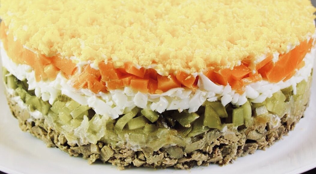 1 слой - куриная печень, майонез;