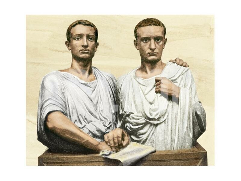 Земельный закон братьев Гракхов Тиберий и Гай Гракхи принадлежали к старинному римскому роду Семпронцев. Их отец дважды избирался консулом. Тиберий успешно участвовал в третьей Пунической войне и прославился как смелый и отважный человек. Он много думал о положении римского народа. Направляясь в Испанию, он заметил, что на полях не видно свободных крестьян, только рабы. Скоро он понял причину такого явления. Пока крестьяне, составлявшие основную часть римского войска, сражались, их хозяйство приходило в упадок, а земли захватывались богатыми землевладельцами (оптиматами). Разоренные крестьяне шли в батраки. Чем меньше оставалось свободных крестьян, тем слабее становилось Римское государство, потому что батраки не имеют право служить в армии. По римским обычаям, предлагать проект законов мог только человек, занимающий государственную должность. Поэтому Тиберий выставил свою кандидатуру на пост народного трибуна (133 г. до н.э.). Он выступил с требованием предоставить земли народу. По