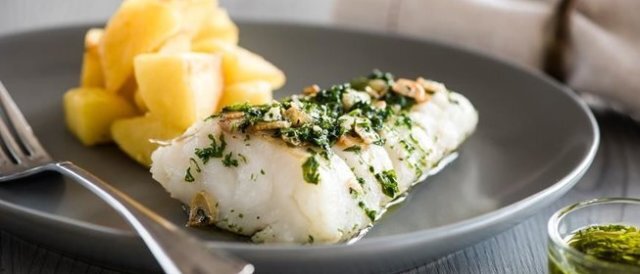800 г порезанной рыбы посолить и поперчить. Поджарить четыре измельчены головки лука. На них в сосуде для запекания изложить рыбу, посыпать тертым хреном (полстакана), залить стаканом сметаны, накрыть и поставить в разогретую духовку на 40 минут. Хорошо получается эта рыба, политая собственным соусом и потушенная с укропом, с жареным картофелем и кусками помидора.
