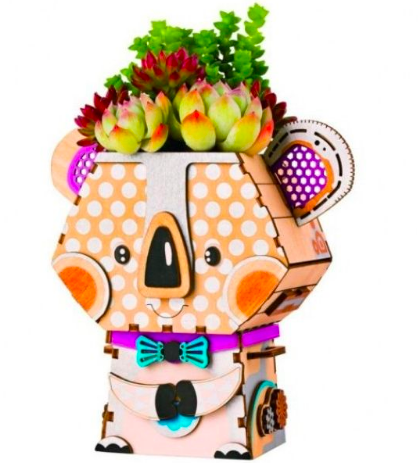 Деревянный 3D конструктор «Коала» с горшком для растений.
