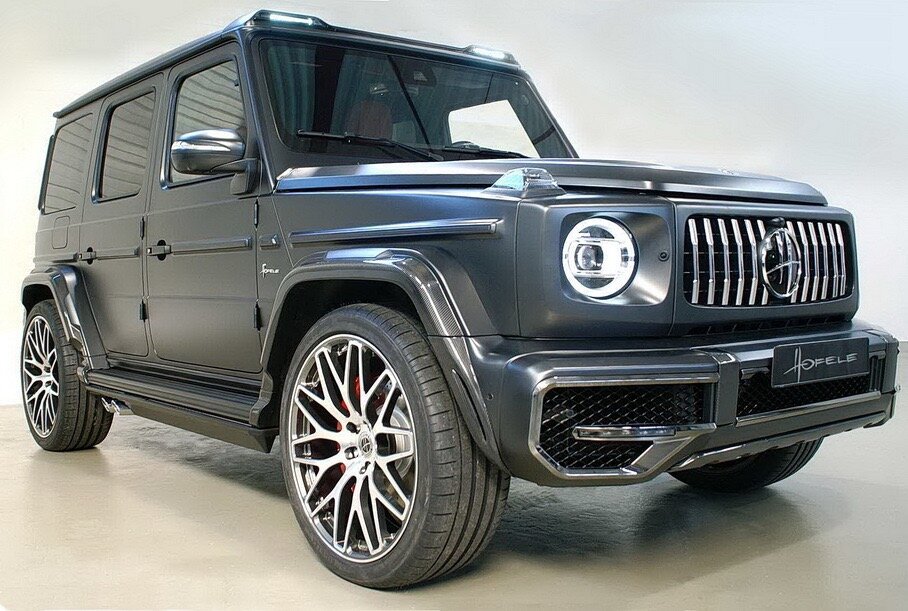 Немецкая мастерская Hofele увеличила вместимость салона нового Mercedes-Benz G-Class. Специалисты ателье показали роскошный внедорожник с тремя рядами сидений и шестью местами, расположенными по схеме 2 + 2 + 2. Вдобавок модернизированный G-Class отличился обвесом и дисками, а интерьер перешили кожей и алькантарой. За основу проекта шестиместного «Гелендевагена» стилисты Hofele взяли топ-версию Mercedes-AMG G 63, хотя по желанию заказчика модернизировать можно внедорожник в любой версии. Внешние улучшения сводятся к замене штатных дисков на кастомные 24-дюймовые изделия из фирменного каталога, установке карбоновых расширителей колёсных арок, изящных светодиодных блоков на крыше, добавлению хрома на радиаторную решётку, замене переднего и лёгкой доработке заднего бампера, а также отказу от логотипов Mercedes-Benz и AMG в пользу надписей и лейбла Hofele. Демонстрационный экземпляр внедорожника в прочтении Hofele оценили в 279 880 евро, то есть едва ли не в два раза дороже, чем «базовый»