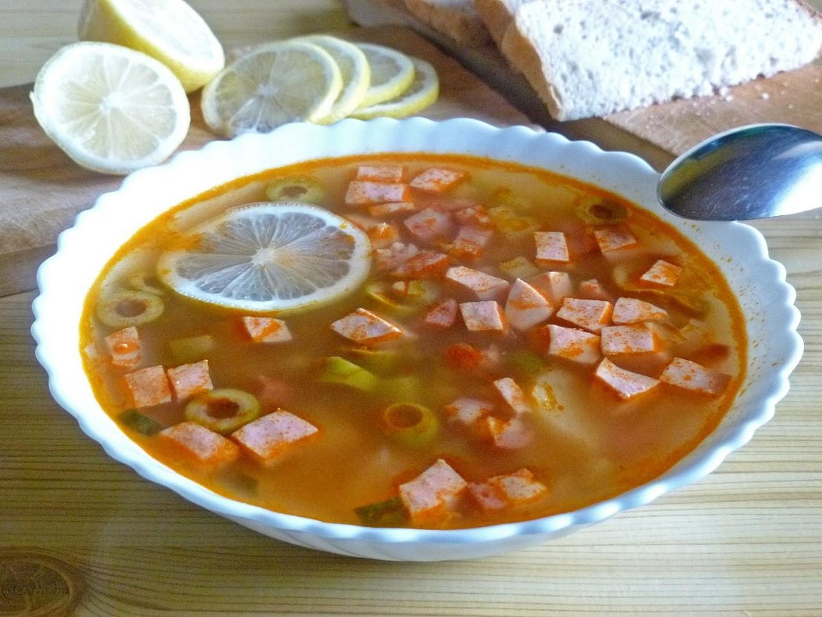 Солянка с варёной и копчёной колбаской. Домашняя кухня.