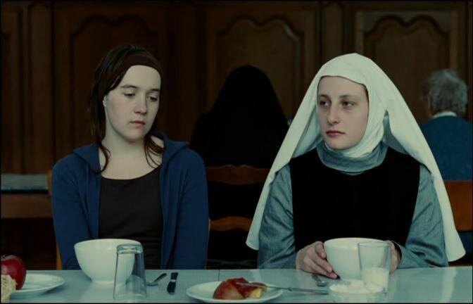 Главная героиня (Жюли Соколовски) из-за своей фанатичной веры подвергает себя холоду – не носит верхнюю одежду, отказывается принимать пищу. В конце концов, мать-настоятельница прости ее покинуть монастырь. И Хадевейх снова становится Селин. Слеин - дочь парижского дипломата. В глаза бросается контраст ее родительской квартиры в Париже и ее кельи в монастыре. Ее мирская жизнь оказывается неожиданностью. Зритель не ожидает увидеть ничего в таком роде, ведь она выглядит очень скромно: ее невзрачная одежда, ее образ говорит о том, что ее не волнует внешний вид – отрицается внешняя оболочка и подчеркивается концентрация на, так называемом, “духовном”.