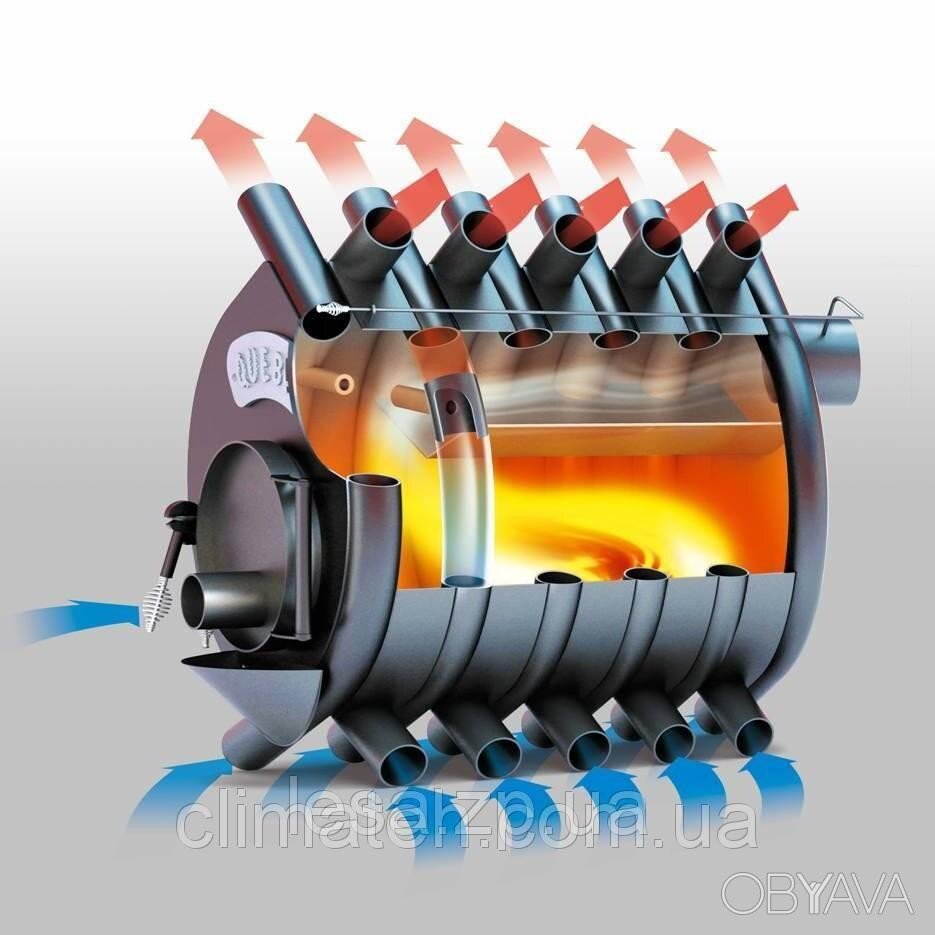 Обогрев помещения происходит не только в результате движения воздуха по трубам, но тепло передается и через стенки. При необходимости обогревать несколько помещений, к печи присоединяются дополнительные трубки.