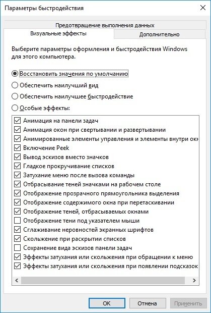 Нажимаем на иконку мой компьютер и выбираем "Дополнительные параметры системы" и жмём обеспечить наилучшее быстродействие.