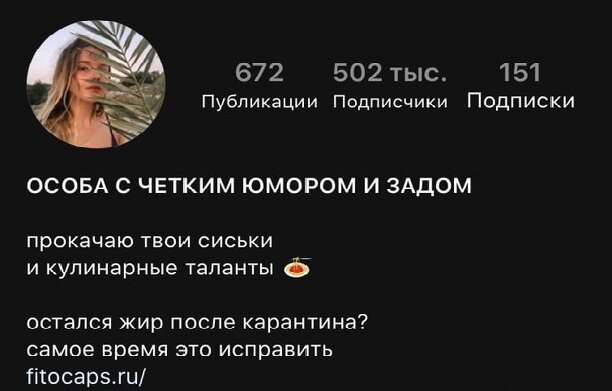FITOCAPS - это ОСОБА С ЧЕТКИМ ЮМОРОМ И ЗАДОМ, у которой 502 тысячи подписчиков в instagram.
