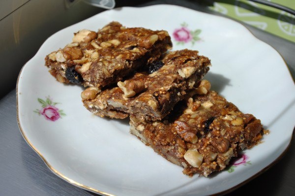 В другой миске смешать пюре из банана , измельченный инжир, добавить изюм, смолотые грецкие орехи.