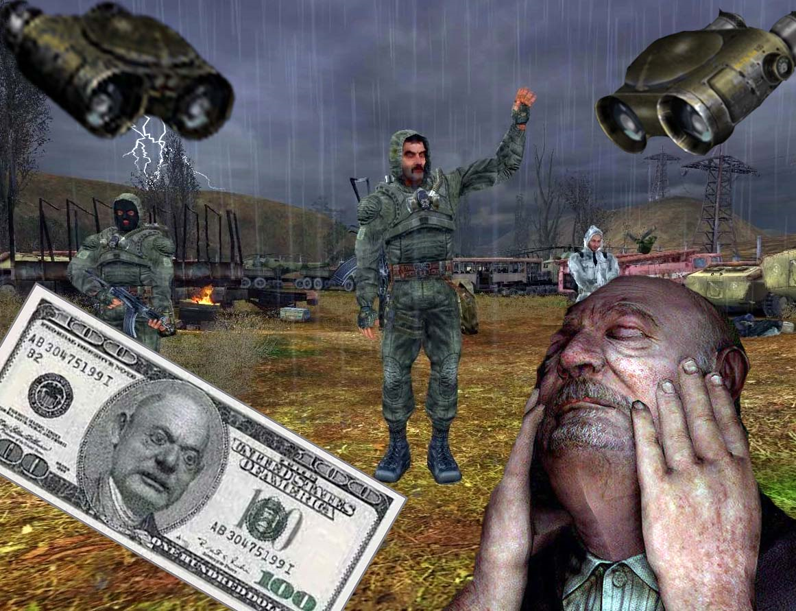 Ну что, готовы стать богачами в Сталкере? Тогда продаём бинокль этому разведчику. Он сразу же выкинет свой. Наверное, он не хочет носить с собой лишние вещи. Нам от этого только лучше.