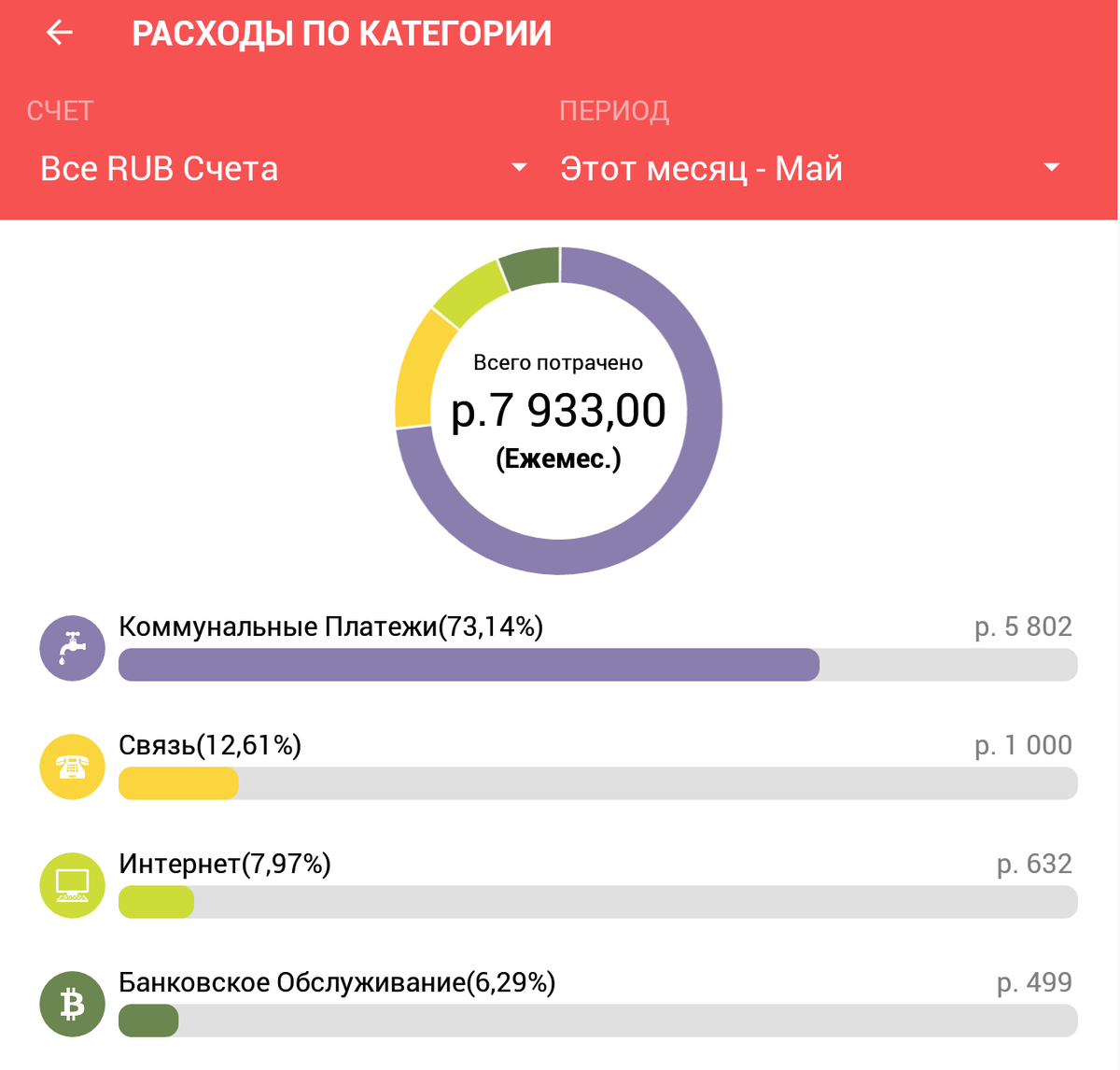 Как ни тянула, а платить все-равно надо. Теперь, работая за небольшую часть зарплаты, обязательные платежи как от сердца отрываю. А раньше, при полной зарплате, в первых числах бегом платила, чтоб в сроки успеть, и чтоб не висели несделанным делом. Но я спланировала расходы на предстоящие месяцы и заложила расходы на обязательные платежи в размере необходимого минимума. Плюс к этому мне поступил выигрыш, так что нет никаких поводов откладывать обязательные платежи. Уж, на коммуналку хватит! Однако, у меня есть переплата - своеобразная небольшая подушка безопасности, которую я успела сделать за прошедшие полгода после рефинансирования кредитов, и которую я частично использовала в апреле, когда угроза доходам уже возникла, а выигрыш еще не пришел. И поэтому я могу не торопиться с платежами, чтоб успеть в установленные сроки - могу их сделать тогда, когда удобно в течение месяца. И вот сегодня сделала платежи. Оплатила минимум, не делая запасов, а получилось много. Обнаружила начисление