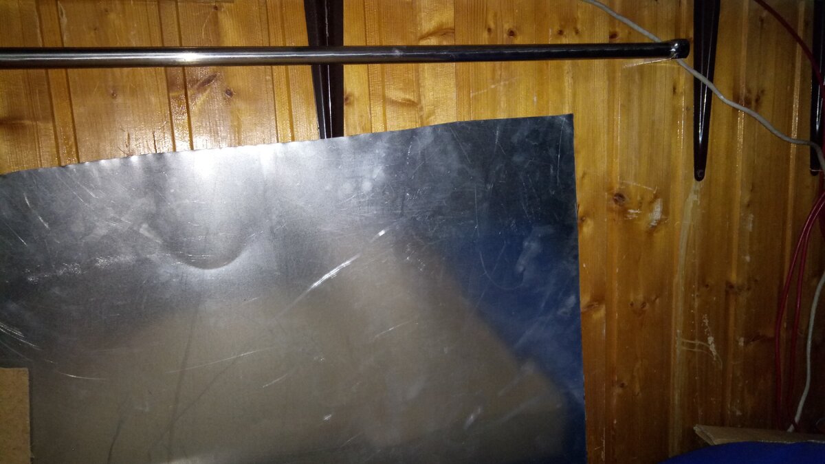 Я давно думал поработать с листовым металлом, и для этих целей обзавелся куском жести, а чтобы эта железяка не мешалась, поставил её возле стены на балконе, тонкая же - места не занимает, и благополучно забыл про неё. Тут весна пришла, и встал вопрос: во что ставить рассаду? Отсутствие дачи жена компенсирует выращиванием помидоров и зелени на балконе. Обычно пятилитровые бутылки с рассадой ставились в пластиковые тарелки, коих вечно от всяких посиделок остается в достатке. На одно лето хватало, но тут они куда-то подевались. Вот и упал у меня взгляд на тот самый кусок жести на балконе... Так как с жестью я раньше особо не работал, то отрезать начал пробовать обычными ножницами по металлу, и получалось это долго, муторно и криво. Чтобы дело пошло быстрее и ровнее, начал по другому. Вначале ножом прочерчивал как можно глубже ровную черту. А потом по этой черте несколько раз сгибал-разгибал жесть по всей длине, пока она не переломилась. Разница в результате видна невооруженным взглядом: К