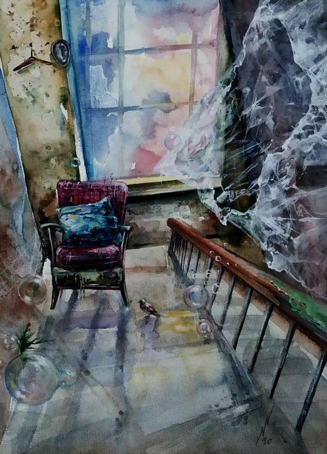 На днях попалась на Фейсбуке картина Наны Нариманбейли. Картина, как картина, сюр первой половины 21 века, который изнутри жизни, а не фантастика или лубок, не подделать так просто обычное человеческое чувство. Но, что-то показалось в ней знакомое, но сразу припомнить не смог. Загрузил в компьютер и время от времени поглядываю. День за днём всплывают воспоминания и приходят в голову аналогии с сегодняшним днём. Ещё совсем недавно жизнь была полная приятных вещей и ожиданий, которые сбывались. Но начался сниться сон, в котором я путешествую по пустыне в Израиле, жара, а крепости царя Ирода, так и не могу найти. Каждый раз возвращался к Мёртвому морю, а на следующий день снова начинал поиски. Верблюд погонщик уже стали как родные. На десятую ночь я уже не мог спать и стал думать, к чему такой сон. И сон прекратился. Это не значит, что я перестал думать на эту тему. Меня поразила обстановка сна, это был двухэтажный дом на берегу Мертвого моря, причём это был мой до