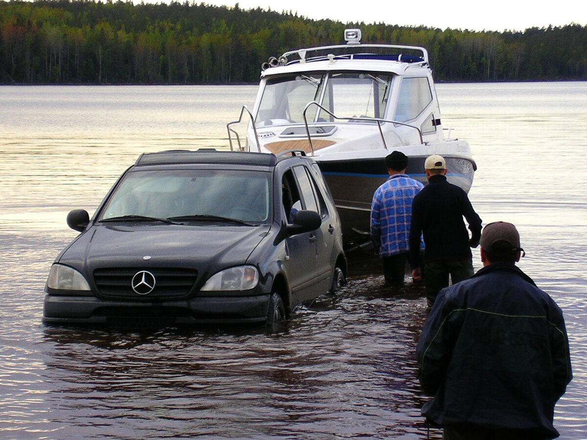 Ещё один важный момент – место спуска катера. Давно стало притчей во языцех, что в нашем регионе с этим большие проблемы. И всё же не такие большие, как 10-15 лет назад. Старайтесь избегать «дикого берега», особенно если ваш катер больше 6 метров. Если машина легко справляется с ним на трассе, это вовсе не значит, что ей так же легко будет и у кромки воды. Рекомендую по возможности выбирать хоть как-то организованные или оборудованные места спуска. Большинство современных баз отдых, расположенных не первой линии непременно имеют такие и охотно предлагают предоставить возможность для слипования.