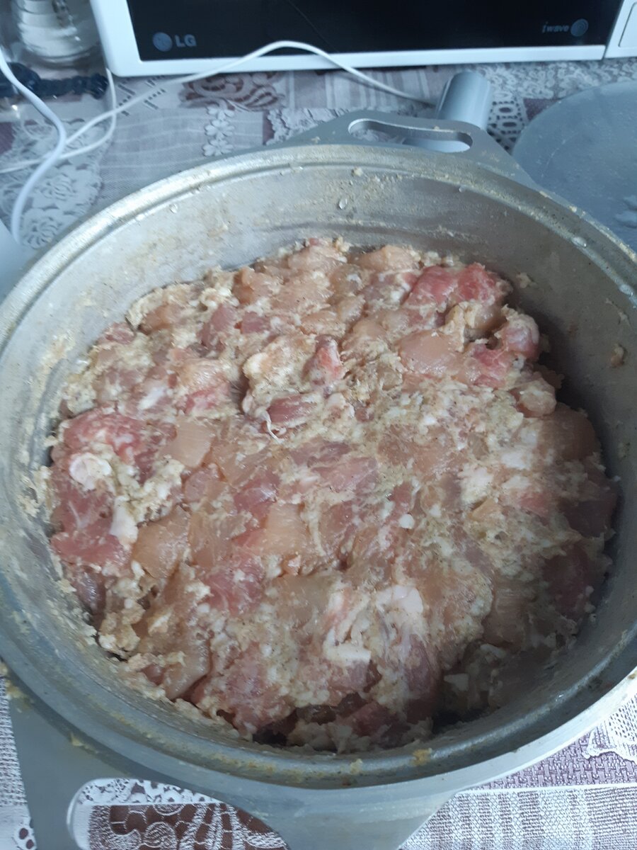 Всем привет! Добро пожаловать на канал "Мамин кулинар". Все мы любим ездить на природу в большой компании. И какая же поездка на природу без шашлычка, либо колбаски на гриле?! И сегодня я вам поведаю замечательный рецепт колбасок по-домашнему! И так, значит берем: кишочку свиную в супермаркете 5 метровую, мяско свиное 1300 г с сальцом, куриную грудочку очищенную 700 г, паприку 1.5 ст. л., соль 1.5 ст.л., перец черный 2 ч.л., хмели-сунели 1.5 ст.л., мясорубочку с насадочкой конусной, чашу литров 5 и погнали. Отрезаем сальцо от свининки. Мяско нарезаем кубиками 1*1 см (можно меньше, но не больше). Сальцо прогоняем через мясорубочку (через обычную насадочку, как для фаршика) и добавляем к нашему мяску, туда же засыпаем приправочки, все это тщательно перемешиваем, и обо всем этом забываем на часов так 10-15. С утреца проснувшись умываемся и идем на кухню промывать от соли нашу свиную кишочку, и даем ей 20-30 минут настояться в воде комнатной температуры После проделанного мероприятия наде