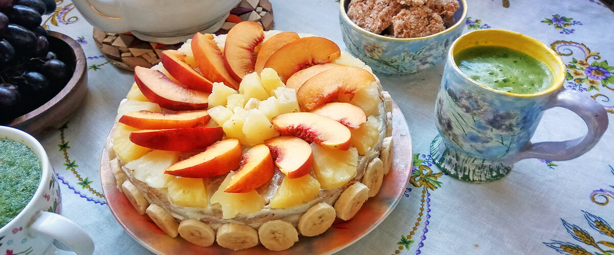 Летом всё вокруг прекрасно — шум моря, течение реки, шёпот ветра, объятия солнца, ароматные цветы и вкуснейшие фрукты. Атмосфера лёгкости наполняет пространство, которое вибрирует яркими красками. Погрузиться в такое состояние легко, когда знаешь, как порадовать своих родных и близких. Простой веганский торт с персиками создан для того, чтобы вновь почувствовать вкус лета.