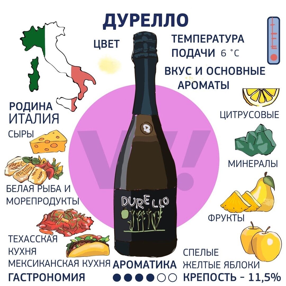 игристое вино на которой была не замысловатая этикетка Дурелло. Я был приятно удивлён появление этого игристого в нашем супермаркете, ведь до этого об этом сорте винограда мне приходилось только читать. Раз уж выпал такой шанс попробовать его я без раздумий взял пару буты