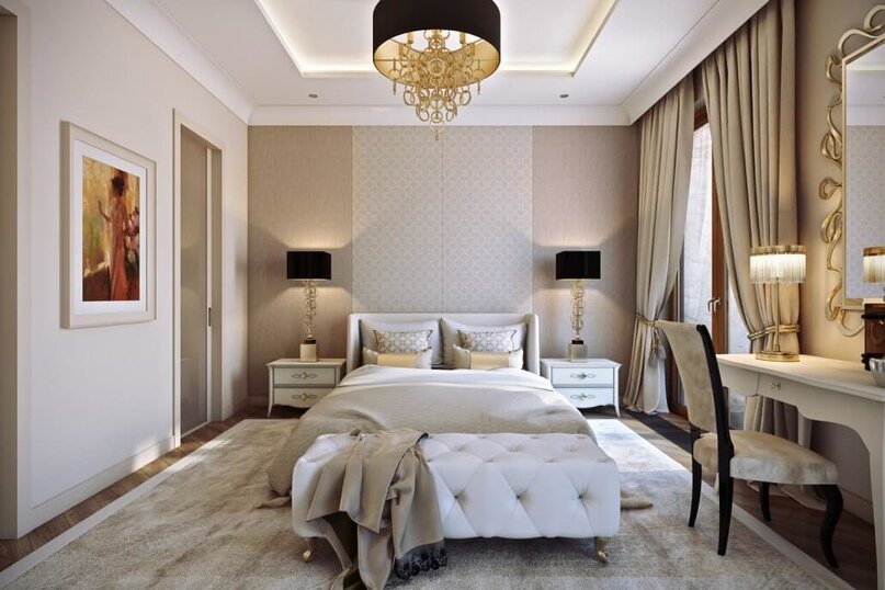 - Из какого материала сделаны стены и присутствуют ли на них декоративные элементы? Фактуру выгодно подчеркнет только окраска, да и вариант “лепнина в окружении обоев” вряд ли будет смотреться выгодно.