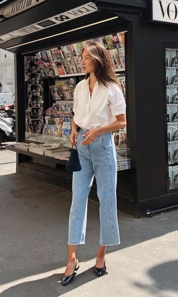 Уверена, что вы уже не раз слышали о том, что база - это основа на которой держится весь ваш гардероб и модные образы. Но главный секрет заключается в актуальных фасонах и утилитарных элементах, из которых должен состоять ваш базовый гардероб. Сегодня я составила для вас три разных разных образа на основе джинсов и белой рубашки, которые подойдут для повседневной носки. Трендовое решение Мой самый любимый тренд этого сезона - комбинирование трикотажного топа с рубашкой. Одна из модных фишек, которая сделает из простого аутфита стильный образ на каждый день. Чтобы добавить цвета в образ выбор пал на лавандовый оттенок, что отлично контрастирует с белым. Если вы хотите добавить аксессуары, то стоит остановить свой выбор на statement серьгах, чтобы не перегружать зону туловища. Ничего лишнего Хорошее решение как look выходного дня, когда не хочется перегружать образ лишними деталями. Шопер отлично подчеркивает легкое и расслабленное настроение в образе, а выпущенная рубашка дает чу