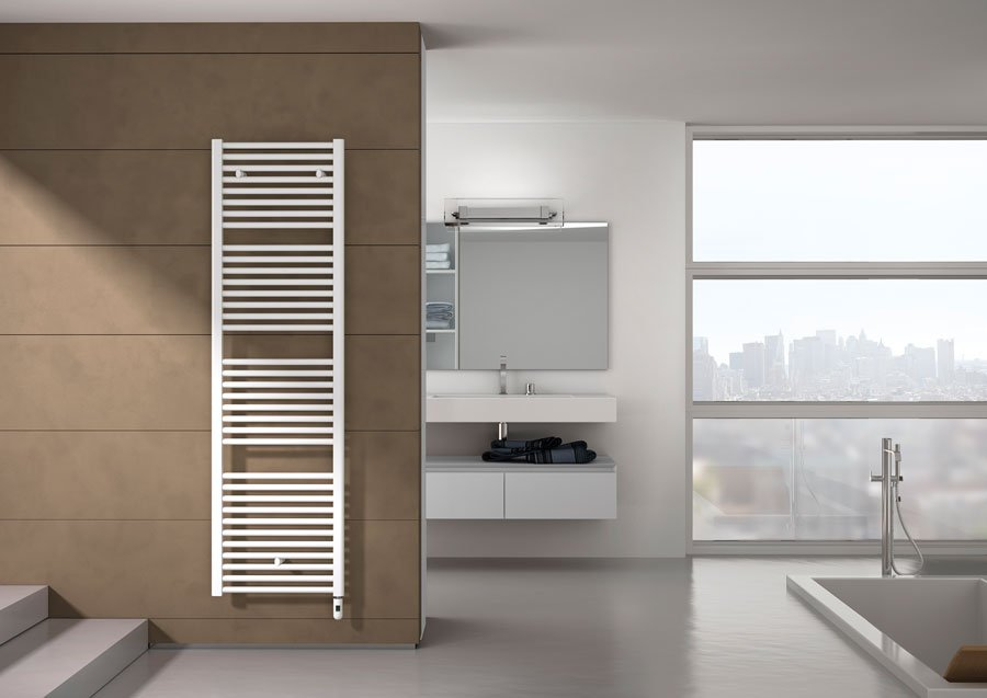 Способ подключения будет зависеть от функции, выполняемой радиатором полотенцесушителя, - поддерживать ли пол с подогревом или только для, например, сушки полотенец. Конечно, мы предполагаем, что пол сделан правильно и петли защищены от потока воды при слишком высокой температуре (с использованием смесительного клапана или типа RTL). Соединять радиатор последовательно с полом не рекомендуется, так как это будет зависеть от температуры радиатора от интенсивности теплообмена через змеевики и практически не увеличит мощность нагрева установки. Также необходимо учитывать снижение температуры воды на выходе из контуров пола примерно на 10 ° C, чтобы поверхность радиатора достигала только 25-30 ° C, а ее мощность нагрева была бы незначительной. Лучшим решением было бы подключить нагреватель параллельно. Это позволяет, в некоторой степени, независимый контроль температуры. Как стандарт, вы можете установить клапан и термостатическую головку, которая реагирует на температуру воздуха в помещен