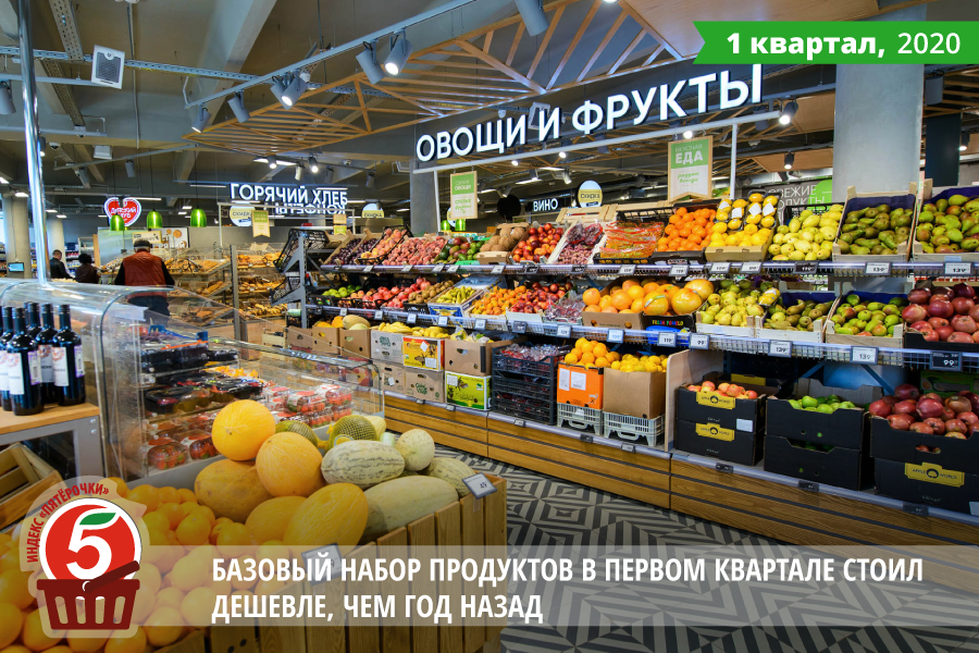 X5 Retail Group представляет индекс «Пятёрочки» за первый квартал 2020 года. В январе-марте этого года базовая продовольственная корзина в среднем по стране стоила 4 127 рублей, в Москве – 5 124 рубля, в Санкт-Петербурге – 4 788 рублей, следует из расчетов Росстата. Такой же набор продуктов в этот период в «Пятёрочке» стоил 4 088 рублей в магазинах сети в Центральной части России, на Урале и в Сибири, 4 542 рубля в столице и 4 594 рубля в городе на Неве. Таким образом, индекс «Пятёрочки» в первом квартале составил 99%, 89% и 96% соответственно. В течение квартала продовольственная инфляция демонстрировала разнонаправленную динамику. После ее замедления в январе и феврале до 2% и 1,8% в годовом сопоставлении, в марте она ускорилась до 2,2% год к году. При этом стоимость базового продовольственного набора за первые три месяца года увеличилась в среднем по стране на 0,3% относительно января-марта 2019 года, в Москве – на 1,35%, следует из данных Росстата. Аналогичная продуктовая корзина в