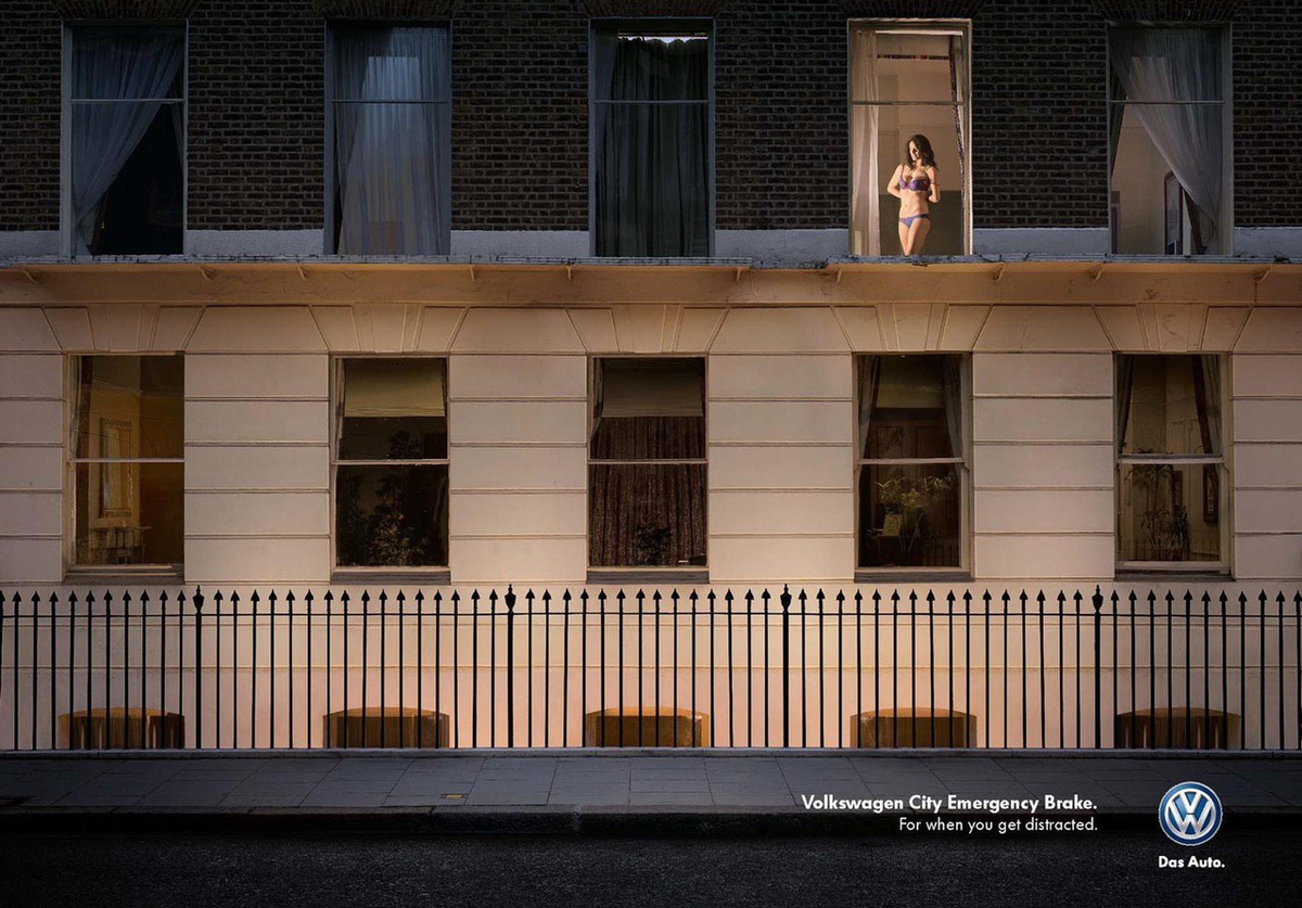 Реклама аварийного тормоза у Volkswagen City на случай когда ты отвлекаешься.