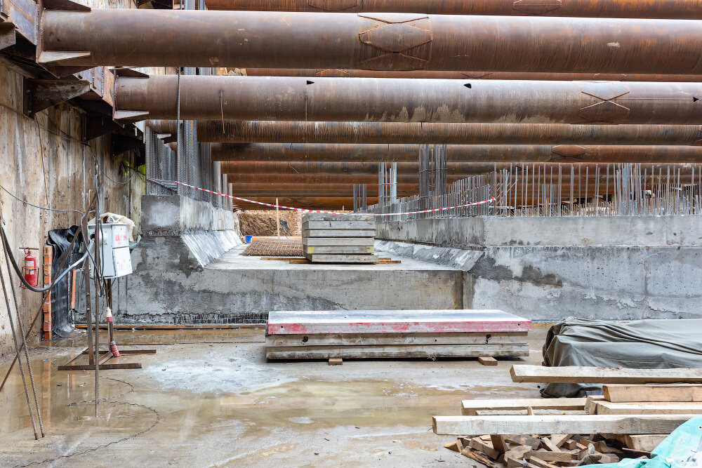 9. Грейфер для сооружения стены в грунте. Если кратко, то в породе выкапывают вертикальную выработку. Чтобы она не сложилась, делают это под защитой бентонитового раствора, который не слипается с грунтом и бетоном. Потом опускают арматурный каркас и начинают бетонировать снизу вверх. По мере заливки бетона, бентонит выдавливается на поверхность, где его откачивают и отправляют на очистку и повторное использование.